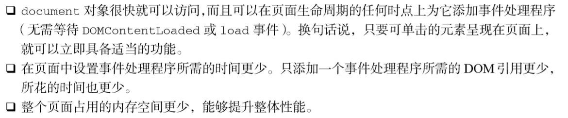 添加一个事件处理程序,用以处理页面上发生的某种 特定类型的事件,与采取传统的做法相比具有的优点