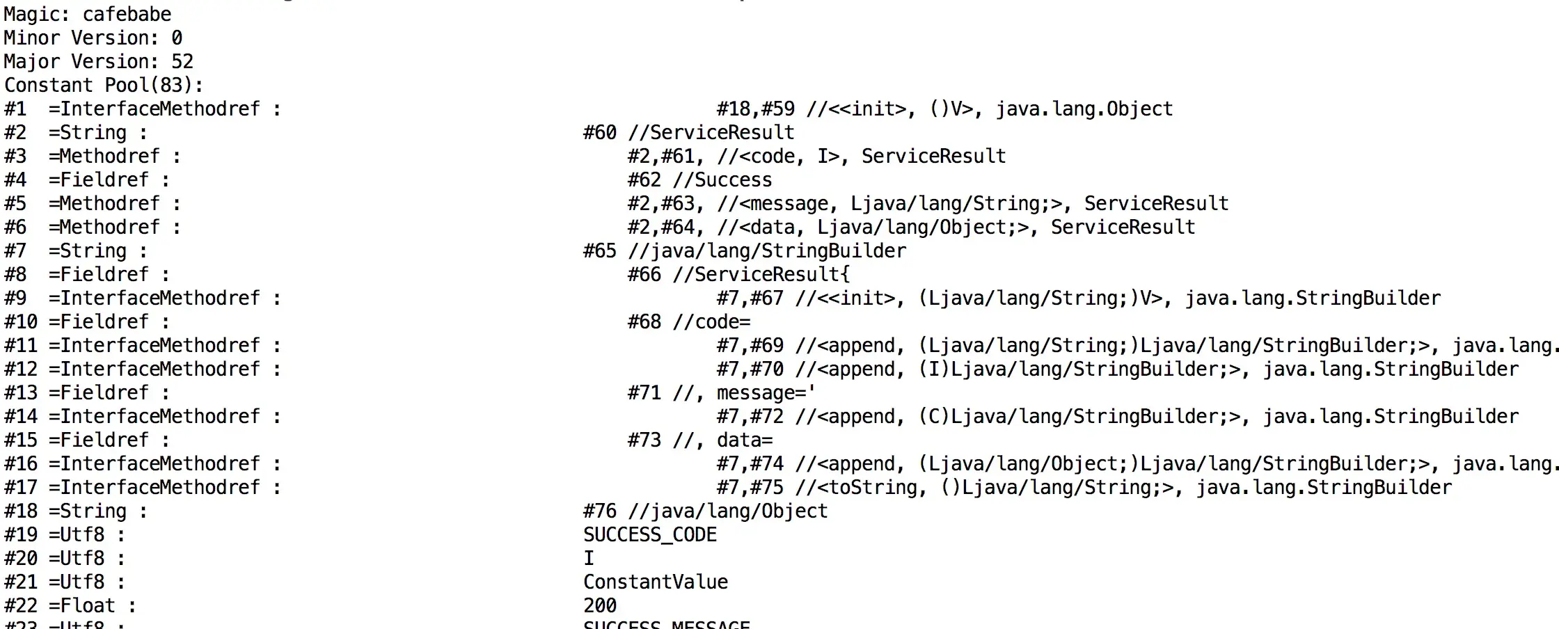 "Methodref", "InterfaceMethodref", "NameAndType",