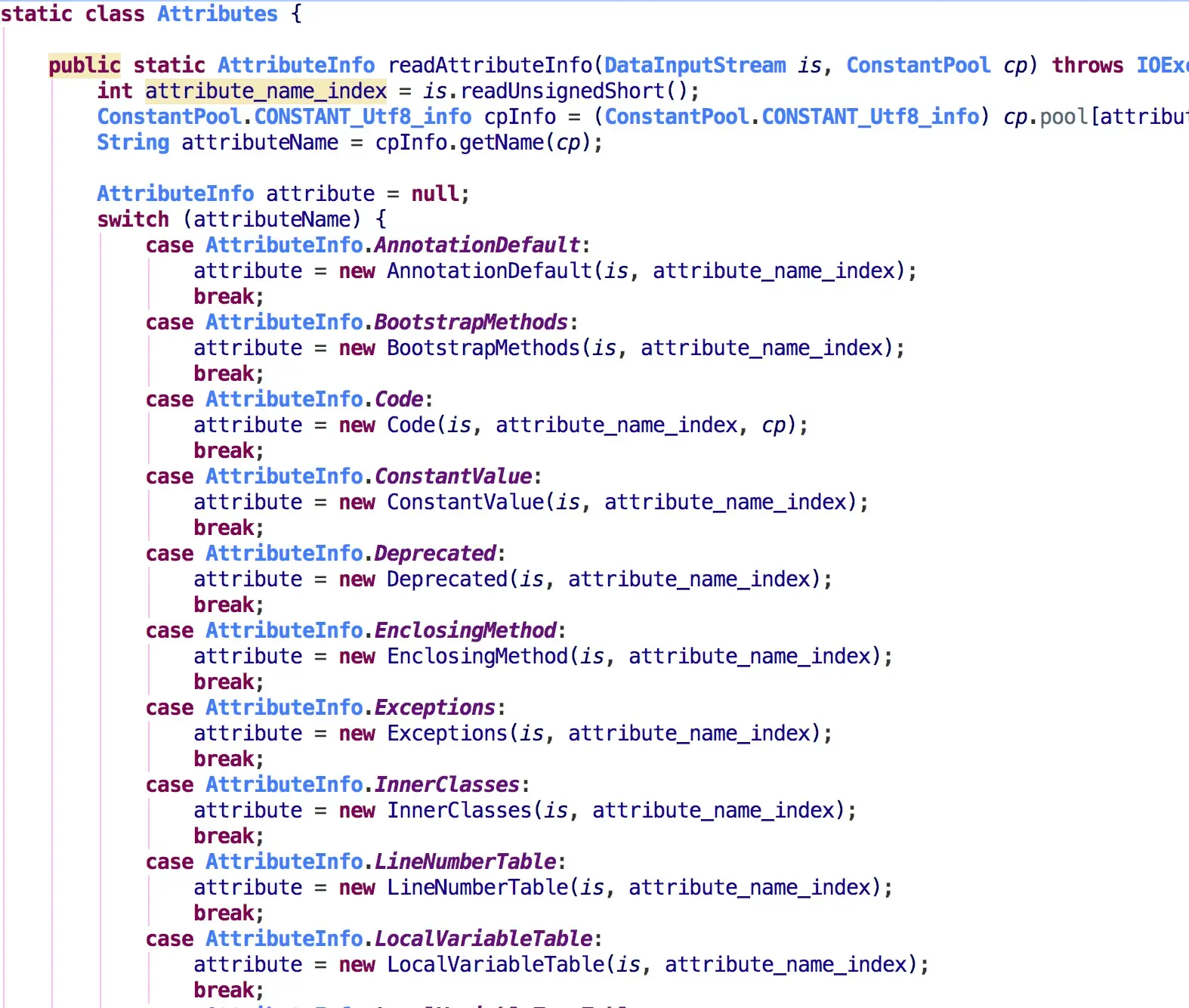 attributes[i] = Attributes.readAttributeInfo(is, cp);