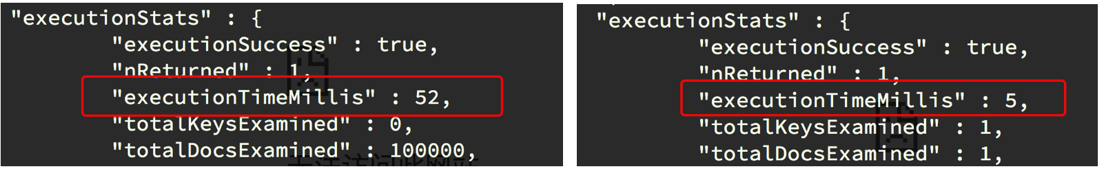 db.t1.find({name:'test10000'}).explain('executionStats') # 显示查询操作的详细信息