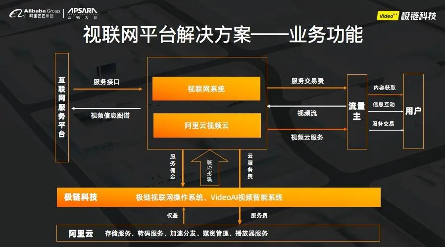 极链与阿里云共创模式下,不仅帮助数十万视频流量客户解决视频播放与传输的问题,更为视频内容创造价值,帮助视频流量主升级到视联网服务商业模式,实现基于视频内容入口的“互联网服务”生态,真正实现“视频即桌面”的互联网进化。同时为互联网服务平台提供视频信息图谱,帮助其将海量视频作为新的商业入口,开辟流量新蓝海,创造营收。