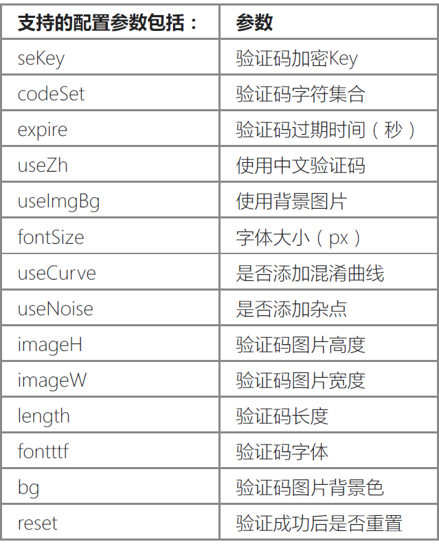 验证码的配置参数统一在应用配置文件( application/config.php )中添加captcha 配置参数,例
