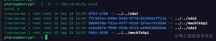 ls -l /dev/disk/by-uuid