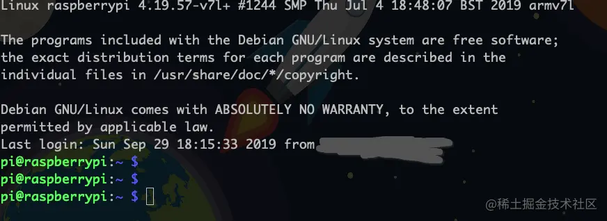如图通过ssh连接树莓派成功。