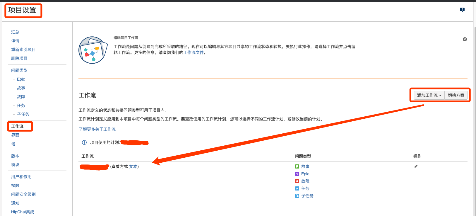 Jira中“工作流”和“工作流方案”是两个不同的范畴。项目中设置的是“工作流方案”,“工作流”关联在工作流方案里面。