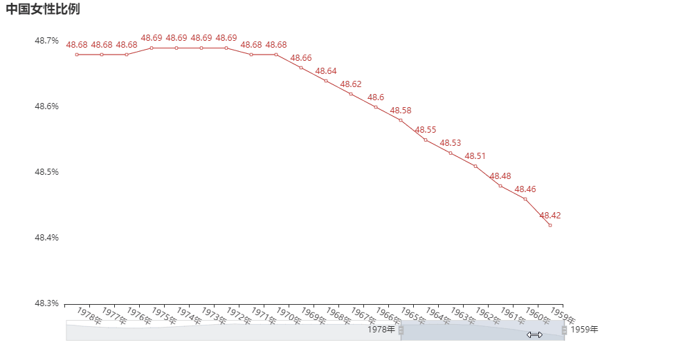 首先我们先来抓取下我国女性的逐年占比数据,看看找对象在什么时代能容易些