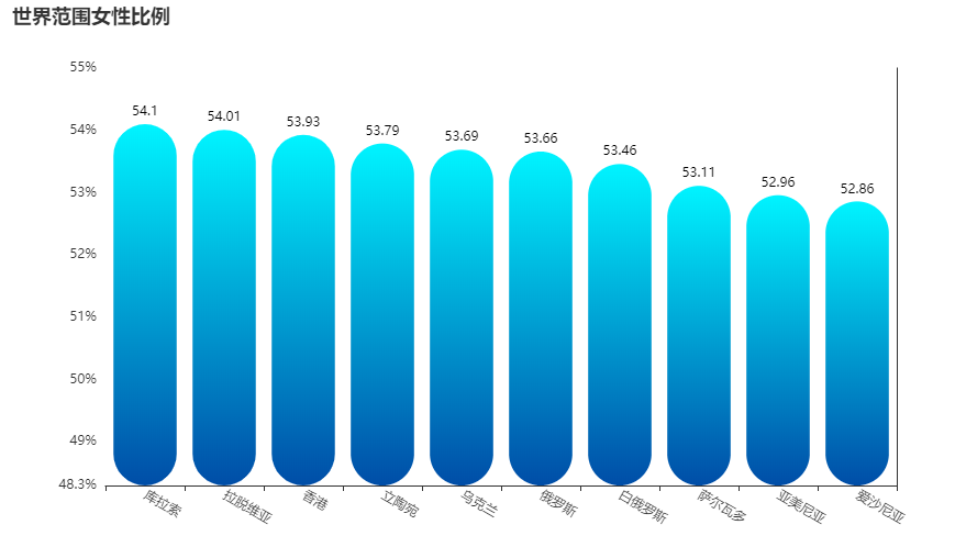 我这里先选取了世界范围内女性占比前十的数据,来看看哪个国家的男同胞们最幸福