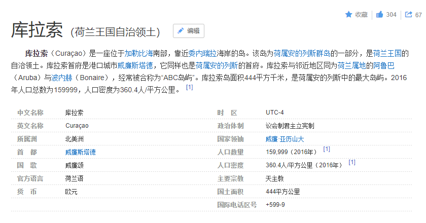 再来看下榜单的第一位,库拉索,这是个神马地方,表示没听过。百度之