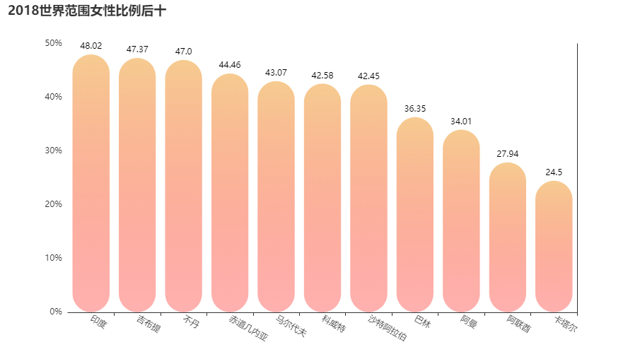 下面就刺激了,我们来看看女性比例排名后十的国家和地区都是哪些呢