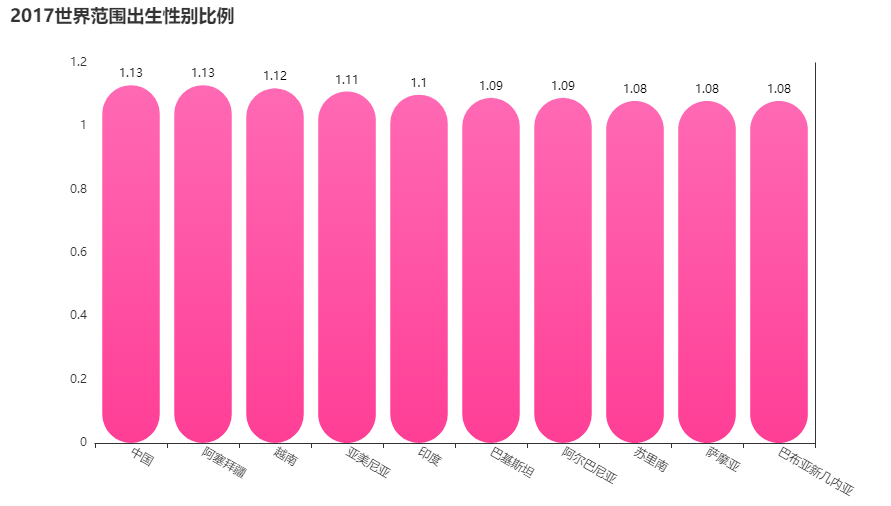 最后我们再来看下在世界范围内,出生性别比例的数据