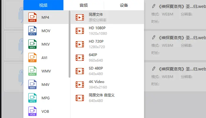 3、然后就是选择一个格式输出了。这里是要将qsv格式转换成mp4,而软件也是默认转换成mp4,所以不用修改,但是也是需要知道怎么修改的。