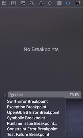 点击这个视图的底部的+按钮,用来添加通用断点: