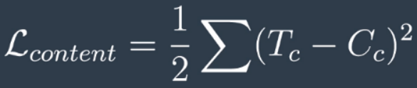 在内容损失方面, T_subC是目标图像内容特征图, C_subC是内容图像内容特征图,L_sub(content)表示两者的MSE。该术语除以2只是为了得到较低的数值。