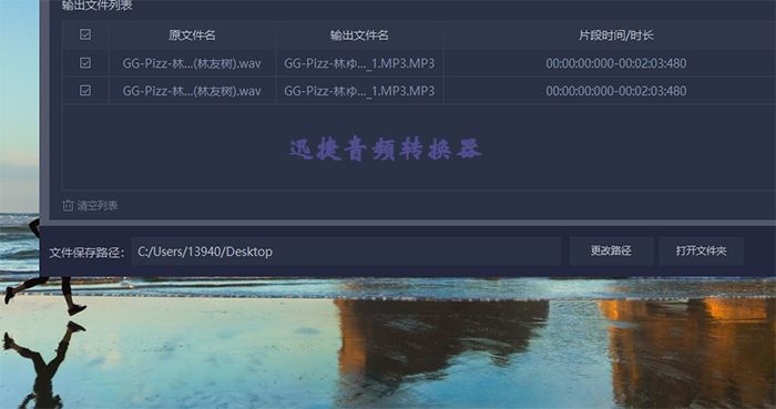 4、弄好之后就可以剪切音频文件了。点击开始剪切或者单独点击视频后面的剪切按钮也可以做到,然后等到剪切完成就可以在桌面上或者其他保存音频的位置看到文件了。然后点击播放就行了。