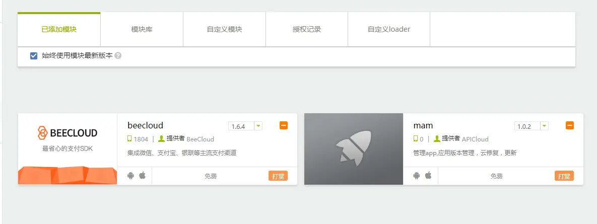 2.在ApiCloud模块中添加beecloud模块