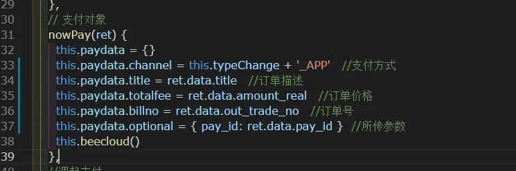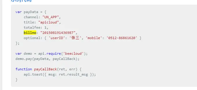 官网示例(payData对象中各属性后面的图片有标注)