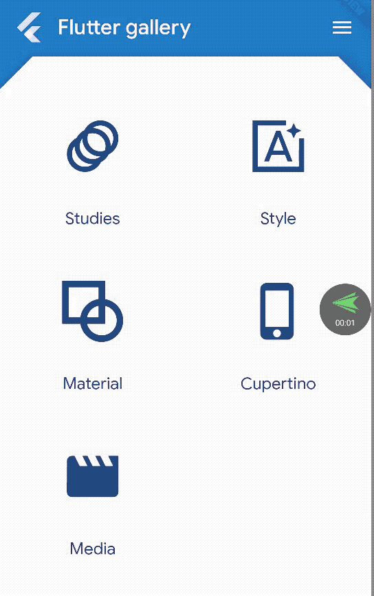 我们首先基于Flutter提供的Gallery项目,比较下其在Mobile和Web上的表现(此处使用Flutter Web默认优化级别):