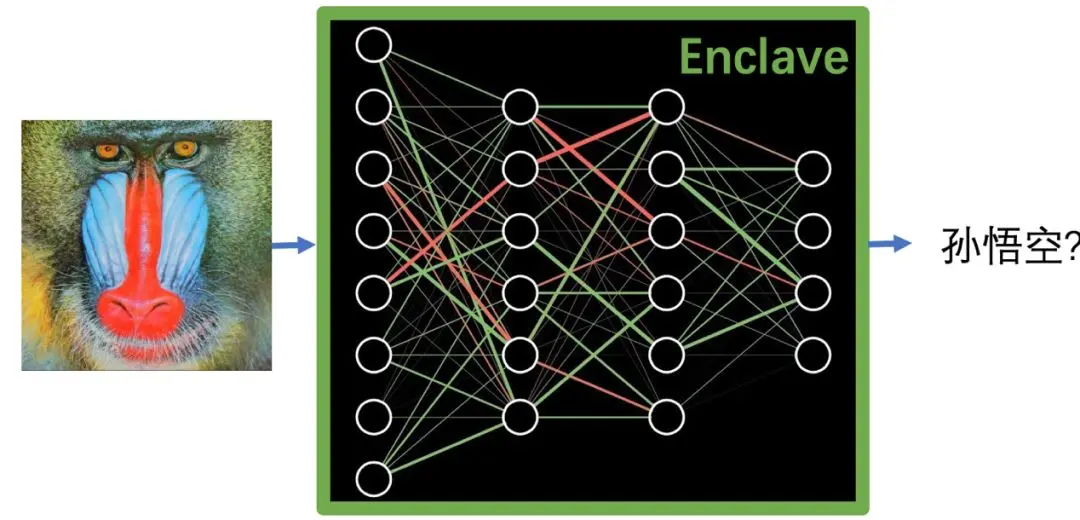 应对这种威胁的一种方案是,使用方把 AI 模型和训练 / 预测数据加密存储,只有在使用时才将其输入 Enclave,在 Enclave 里面解密,由 Enclave 中运行的 AI 框架处理,结果根据具体场景需求以明文返回或加密返回并在使用方本地解密。这要求 Enclave 能支持常见的 AI 框架,而要做到这一点极为挑战——一方面是因为这些 AI 框架一般使用了复杂的多线程、OpenMP 等性能优化的运行环境,另一方面是因为 Enclave 又偏偏难以提供这些支撑环境。这就是为什么市面上很多 Enclave 支撑系统难以支持(或难以高效支持)AI 框架的原因。