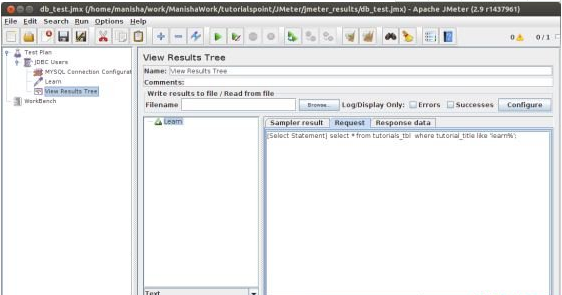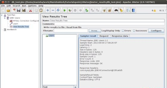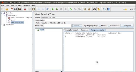 现在保存的以上测试计划db_test.jmx。执行本测试计划使用 Run > Start 选项.