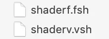 所以我们一般会创建一个文件,后缀为 “.vsh” 和 ".fsh",“.vsh” 代表 verterx shader 顶点着色器,".fsh" 代表 fragment shader 片元着色器。