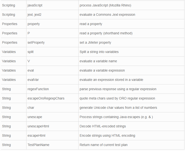 测试计划使用的功能有一些限制。JMeter的线程变量没有被完全成立处理功能时,不会设置变量名作为参数传递,将无法正常工作和变量引用,所以split() 和 regex() 变量赋值函数不会工作。 threadNum() 函数将不能工作(没有任何意义在测试计划级别)。