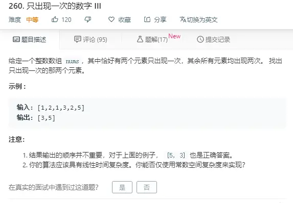 这一题本身并不难,难的是进一步的优化。直接AC过去简单,但能不能经得住更深入的提问,非常考验面试者的数学功底和科班素养。简而言之,看你到底懂不懂计算机的二进制操作。