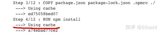 利用 build cache,我们完全跳过了 npm install,耗时接近 0!