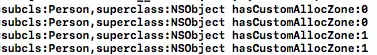 printf("subcls:%s,superclass:%s hasCustomAllocZone:%d\n",subcls->nameForLogging(),supercls->nameForLogging(),subcls->ISA()->hasCustomAWZ());