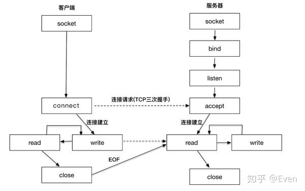下面是常见的网络编程的交互图:
