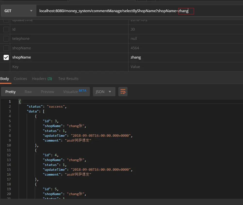 - 根据shopName的其中一个zhang就可以查询几个实体了