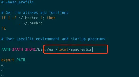 :/usr/local/apache/bin 执行source /root/.bash_profile,使上面的环境变量设置立即生效。现在可以尝试直接使用