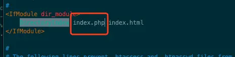 DirectoryIndex配置项,加入index.php配置完毕,重启apache: