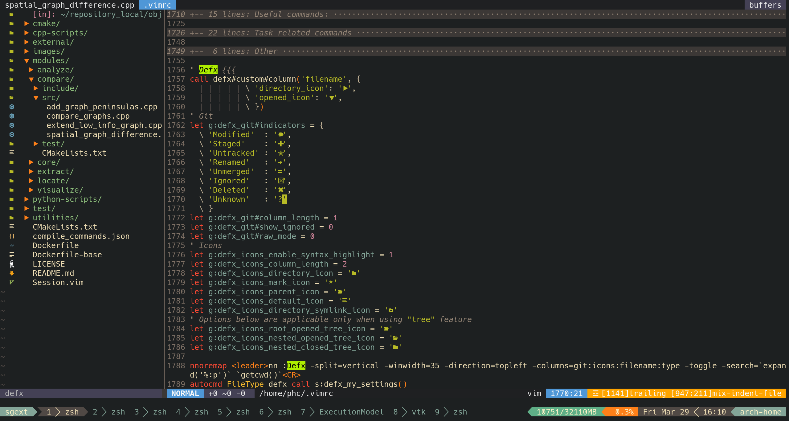 当然这次要介绍的是另一个插件 defx,出自 vim 插件高手 Shougo。 搭配上 defx-icons,还可以展示出文件类型图标。