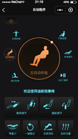 按摩椅小程序,UI很漂亮 程序员老左 2019-10-01 779 阅读1分钟 本实例是为迪斯按摩椅定制的小程序,采用蓝牙控制设备。有需要开发类似共享按摩椅的小伙伴可参考这个UI,以及蓝牙的开发下载: market.zhenzikj.com/detail/78.h…效果
