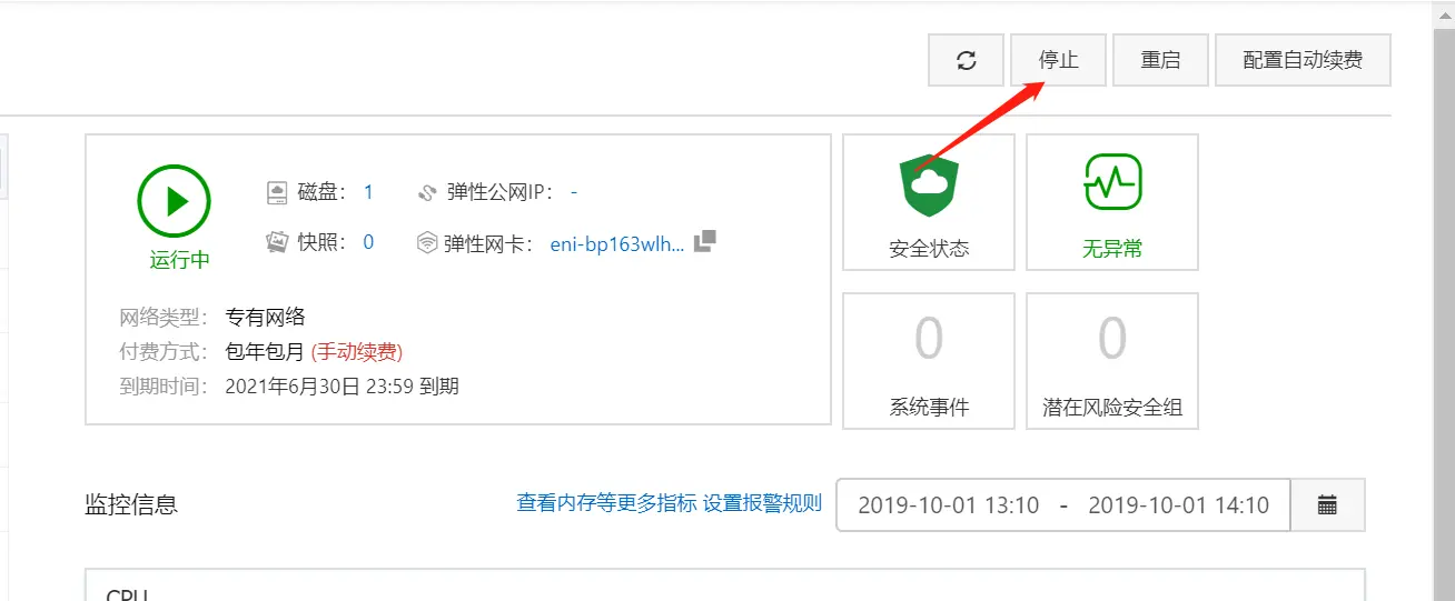 - 停止(关机)