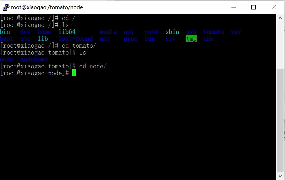cd tomato/node/ 进入我刚创建的tomato文件下的node文件夹