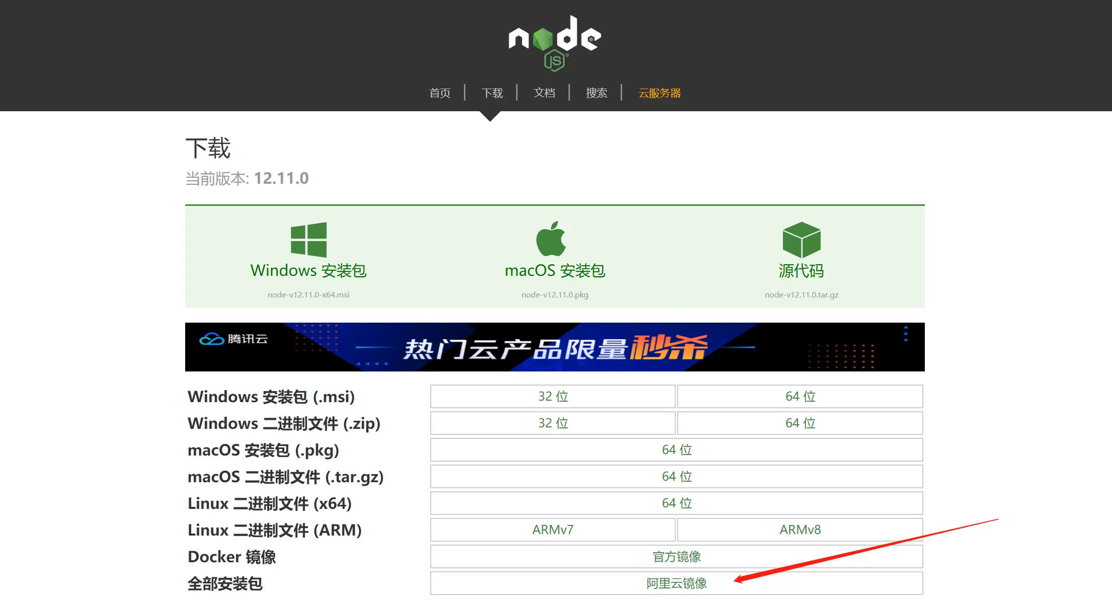wget https://nodejs.org/dist/v12.11.0/node-v12.11.0-linux-x64.tar.gz 下载node压缩包