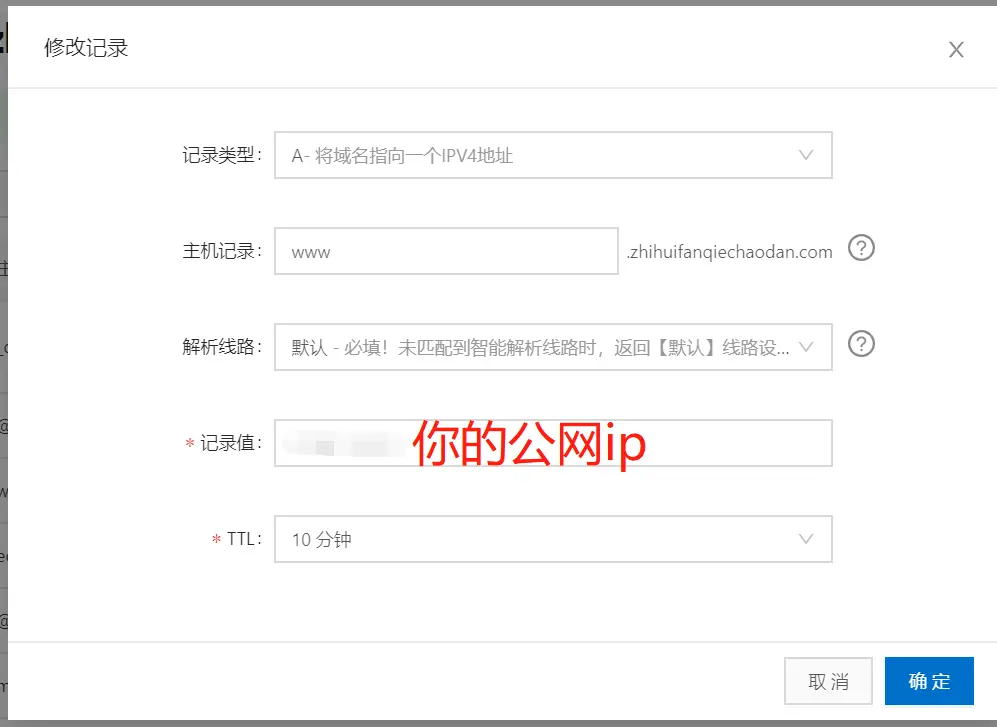 你服务器的公网IP