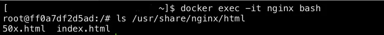docker run -d --name nginx -v /usr/share/nginx/html nginx