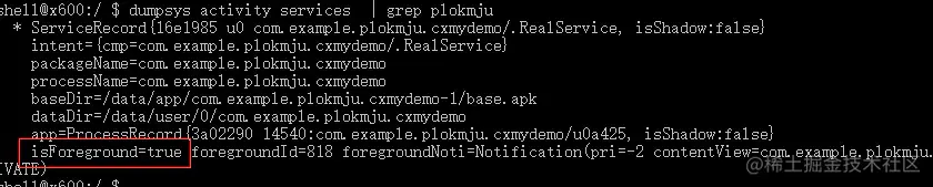 $ dumpsys activity services | grep plokmju