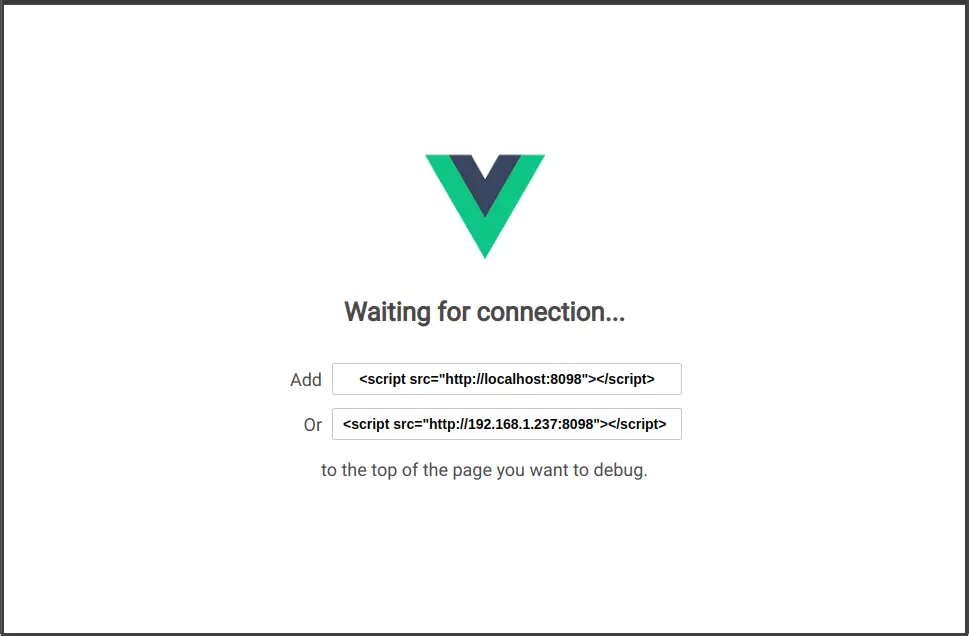 <script src="http://localhost:8098"></script>然后等待独立应用程序重新加载-它会自动连接到您的Vue应用程序。