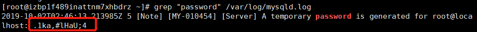 - 通过命令在日志文件中找出初始密码: