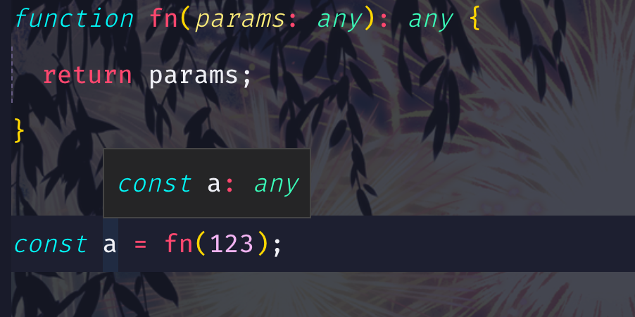 因为在声明函数的时候不能确定参数的类型,所以用了any,既然返回值类型和参数类型相同,那么返回值的类型也是any。