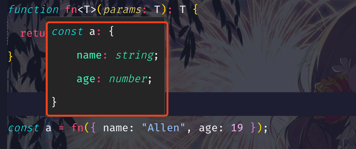 const a = fn({ name: "Allen", age: 19 }); // 第一种