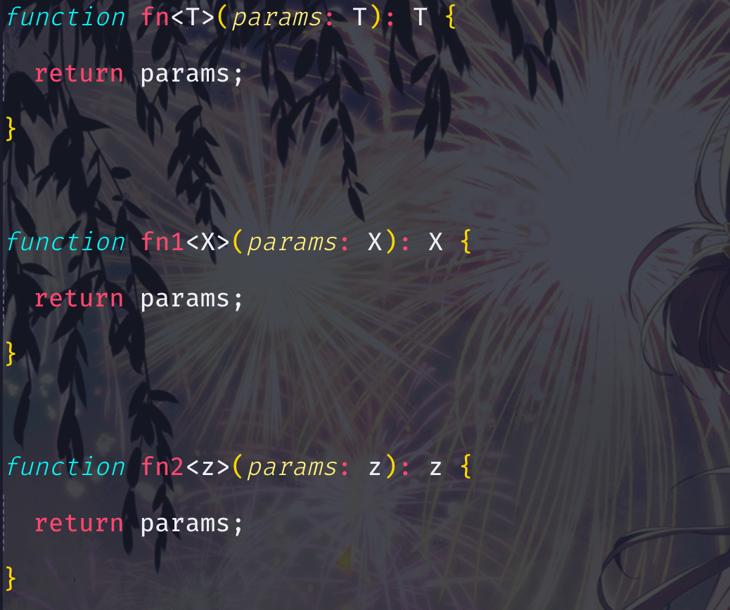 function fn<T>(params: T): T {