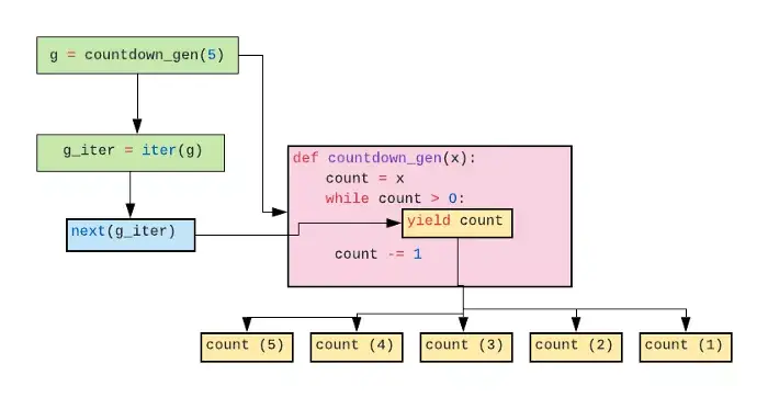 通过这种方式,与使用闭包函数一样,Python生成器函数在连续调用期间保持相同状态。或者,正如PEP 255所说: