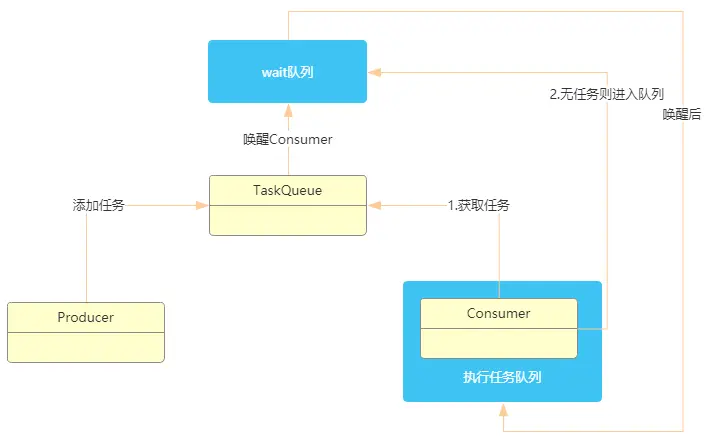 2.Consumer从TaskQueue中获取任务并处理,如果获取不到则进入wait队列