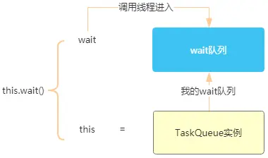 2.wait队列归属一个对象,这里是this,而this是TaskQueue的一个实例对象,因此这个wait队列归属一个TaskQueue实例。
