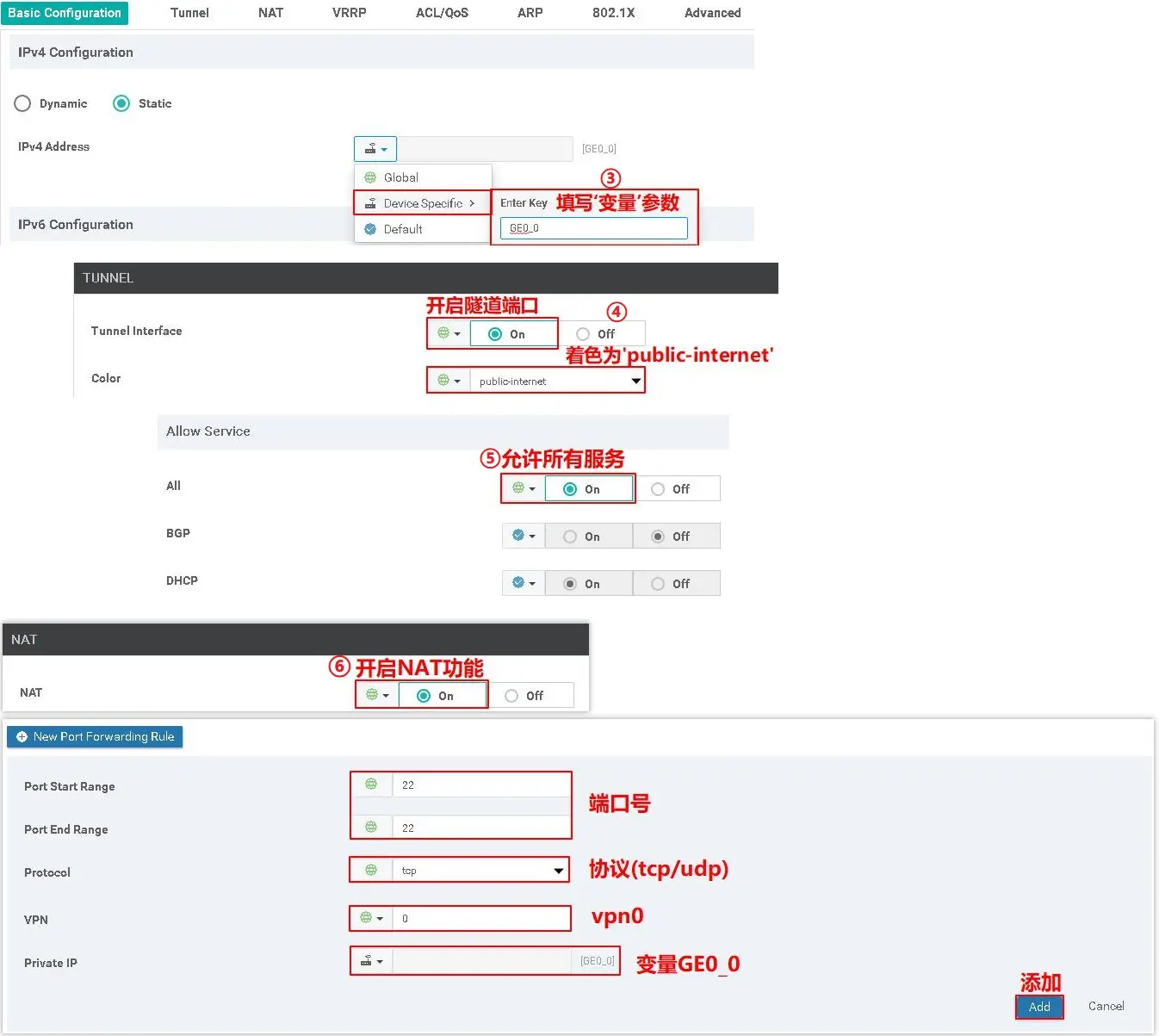 备注:开启NAT功能,避免当NAT功能无法使用时,无法SSH到设备。