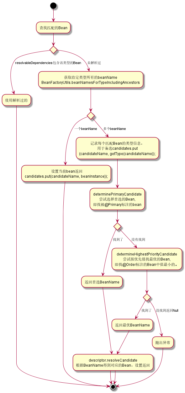 1.找到所有与类型匹配的bean,如果只有一个直接返回。